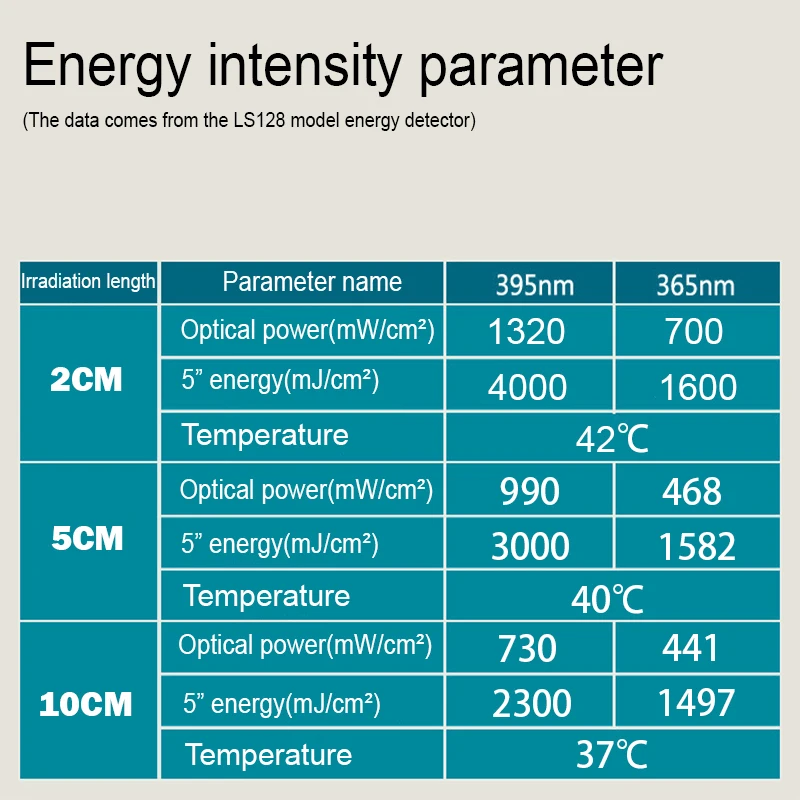 USB 5V 15W, 405nm, 395nm, 365nm |