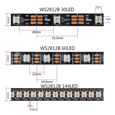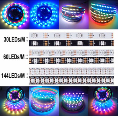 WS2812B 5050 RGB 30/60/144LEDs/M LED Strip ws2812 IC Individual Addressable 5V Product Description Input voltage: DC 5V Power: 30leds/m----9 watt/meter 60leds/m----18 watt/meter 144leds/m----43.2 watt/meter LED resource: WS2812B led(5050 SMD RGB LED...